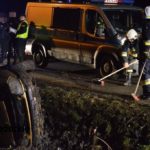 Kierowca został ukarany mandatem. Na miejscu zdarzenia pozostała Policja oraz Straż Pożarna. Obecnie trwają prace związane z postawieniem pojazdu z powrotem na koła. Mogą występować utrudnienia w ruchu.