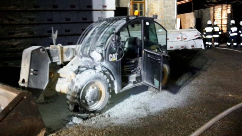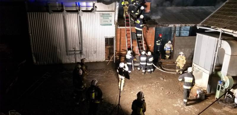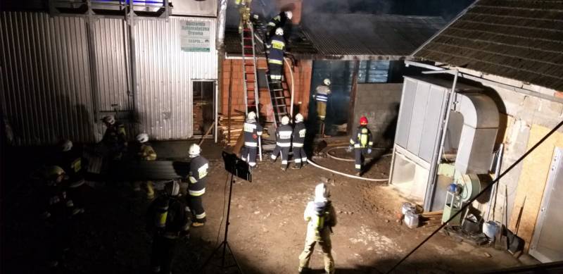 – Po przybyciu na miejsce zdarzenia ustalono, że paliła się wiata z kotłownią w suszarni drewna oraz ładowarka teleskopowa –relacjonują strażacy – Strażacy natychmiast przystąpili do gaszenia pożaru i zabezpieczenia mienia. Wykonano prace rozbiórkowe poszycia dachowego wiaty i kotłowni oraz sprawdzono kamerą termowizyjną cały obiekt. Na miejsce przybył patrol Policji. Po ugaszeniu pożaru przystąpiono do sprawdzania pogorzeliska. Kamera termowizyjna nie wykazała zagrożenia. Działania prowadzone przez 9 zastępów i 55 strażaków trwały około dwie i pół godziny. Prawdopodobną przyczyną pożaru była wada urządzenia grzewczego na paliwo stałe.