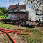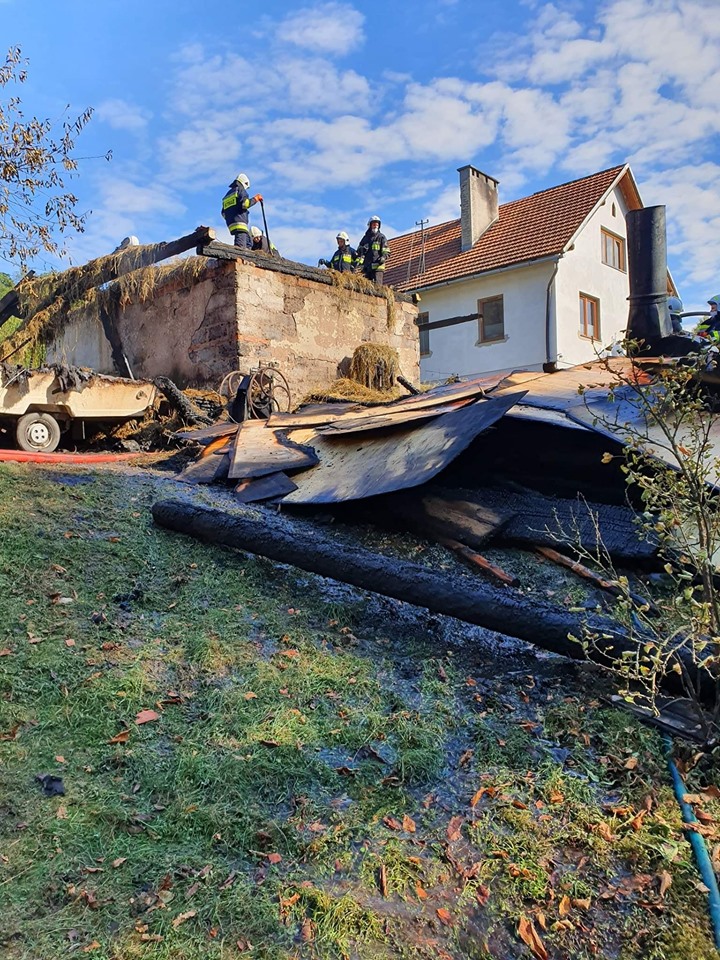 Po przybyciu na miejsce  zdarzenia ustalono, że pożarem objęty był cały budynek gospodarczy o konstrukcji drewniano-murowanej –relacjonują strażacy z PSP Nowy Sącz – Zagrożony był budynek mieszkalny zlokalizowany w odległości około 10 m od pożaru. Jedna osoba zgłaszała objawy podtrucia dymem. Działania straży polegały na zabezpieczeniu miejsca zdarzenia, oraz przewodów elektrycznych. Wezwano Pogotowie Energetyczne. Udzielono kwalifikowanej pierwszej pomocy osobie poszkodowanej. Po zlokalizowaniu pożaru przystąpiono do prac rozbiórkowych spalonej konstrukcji budynku gospodarczego. Wszystkie elementy konstrukcji stwarzające zagrożenie zostały usunięte i złożone w bezpiecznej odległości. Pogorzelisko sprawdzono przy użyciu kamery termowizyjnej nie stwierdzając zagrożenia. Działania 8 zastępów oraz 37 strażaków trwały trzy godziny. Przyczyna pożaru jest nieustalona.