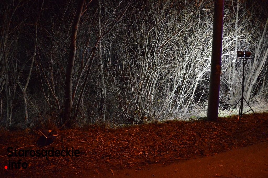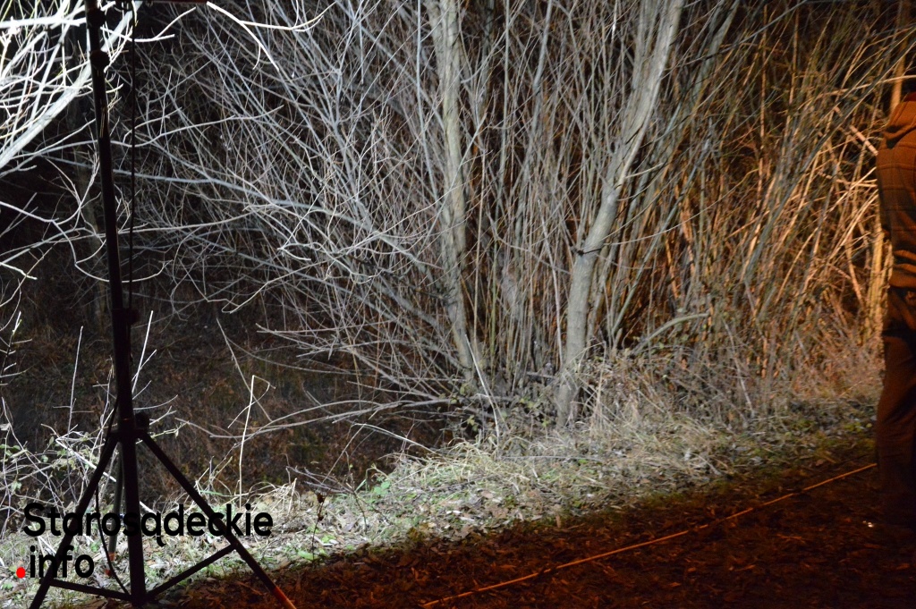 Około godziny 20:00 miejscowi znaleźli ciało mężczyzny w potoku. Mężczyzna spadł z dość dużej wysokości. Potok w tym miejscu jest wyjątkowo płytki. Mało prawdopodobne jest więc, że mężczyzna utonął. Co było przyczyną tej strasznej tragedii? To z pewnością wyjaśni sekcja zwłok. Na miejscu zdarzenia pracują policjanci pod nadzorem prokuratora. Teren oświetlają strażacy.