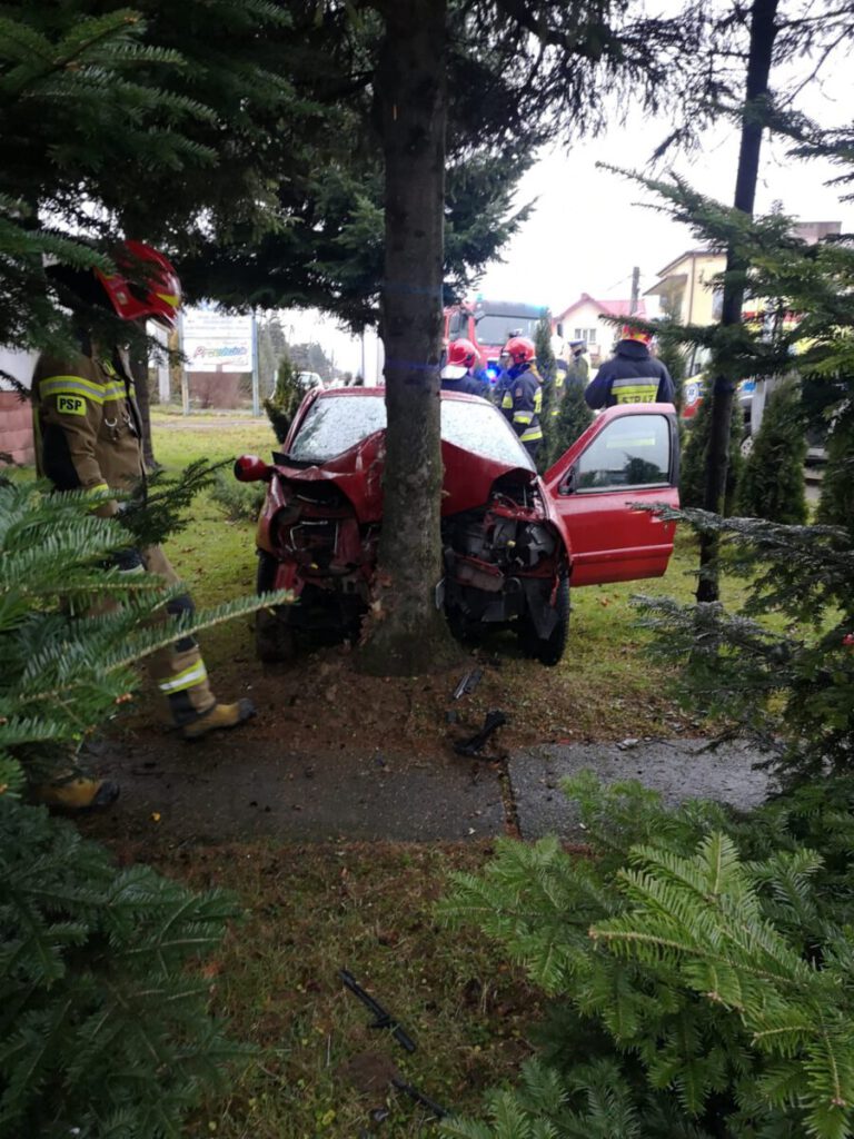–Po przybyciu na miejsce zdarzenia ustalono, że samochód osobowy uderzył w drzew -relacjonują strażacy –Na miejscu znajdowała się Policja oraz karetka Pogotowia Ratunkowego. Samochodem podróżował sam kierowca, który opuścił pojazd i znajdował się pod opieką ratowników medycznych Pogotowia. Działania Straży Pożarnej polegały na zabezpieczeniu miejsca zdarzenia, sprawdzeniu czy pojazd nie ma wycieków oraz odpięciu akumulatora w samochodzie. Na miejscu zdarzenia pozostała Policja.