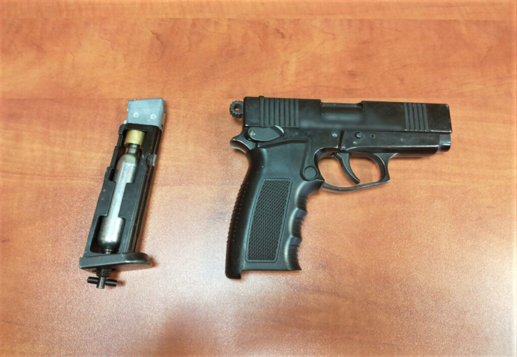 W międzyczasie o sytuacji została powiadomiona Policja. Kiedy sprawca usłyszał sygnały nadjeżdżającego radiowozu, zaczął uciekać w kierunku składu budowlanego. Tam został ujęty przez kierującego audi, a następnie został zatrzymany przez grybowskich policjantów. Agresywny mężczyzna został przebadany na trzeźwość – okazało się, że miał w organizmie ponad 1,5 promila alkoholu. W samochodzie, którym kierował, funkcjonariusze znaleźli około 50-centymetrową maczetę oraz tzw. wiatrówkę. W trakcie dalszych czynności, podczas przeszukania odzieży mężczyzny, mundurowi natrafili w jednej z kieszeni na woreczek strunowy, w którym znajdował się biały proszek. Badanie substancji narkotesterem wykazało, że jest to metamfetamina. Dodatkowo, okazało się że 25-letni mieszkaniec gminy Grybów nie posiada uprawnień do kierowania pojazdami.