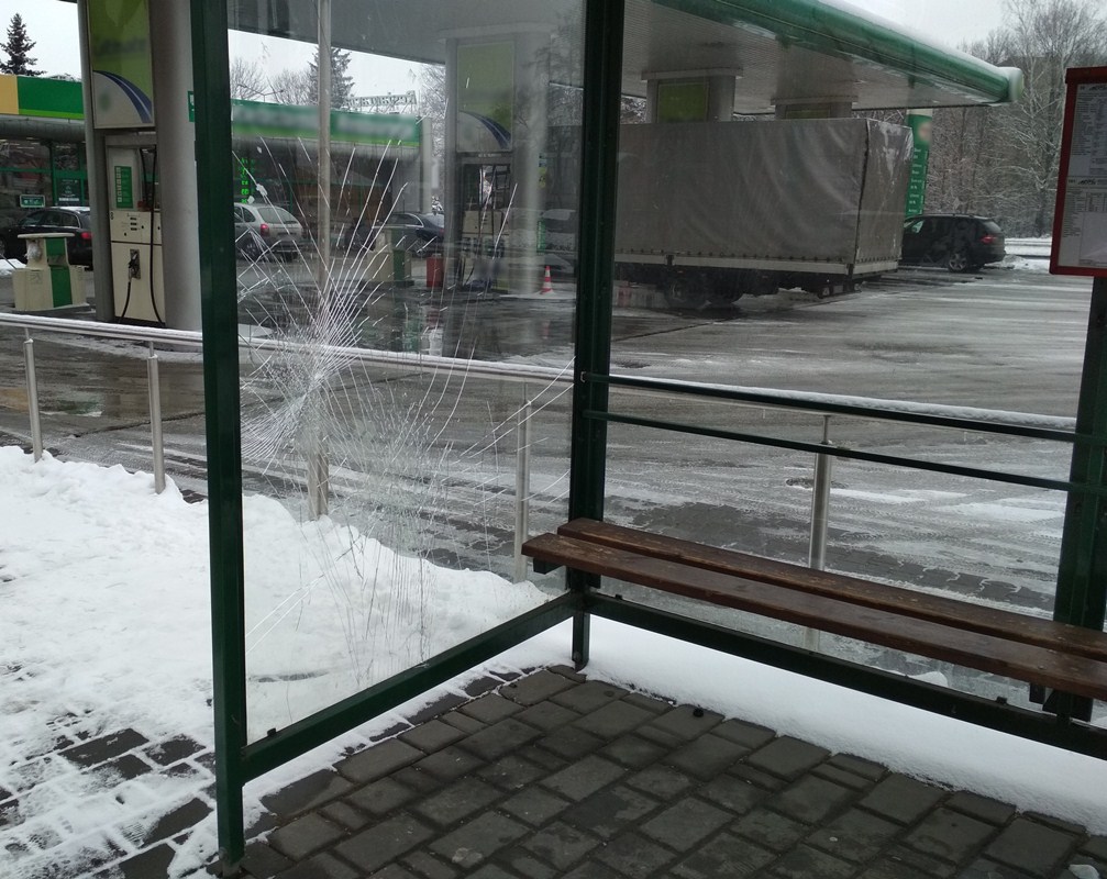 Gdy 12 lutego po godzinie 20.00 policyjni wywiadowcy przejeżdżali w rejonie centrum handlowego przy ulicy Prażmowskiego, zauważyli, że dwóch mężczyzn kopię w szybę wiaty przystankowej. Następnie mężczyźni zaczęli szarpać metalową konstrukcją wiaty, po czym znowu kopać w szybę, aż do momentu gdy pękła.