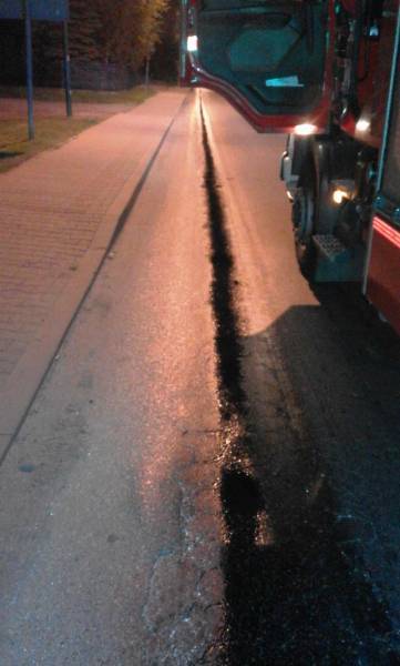 Nocna akcja 54 strażaków i wielka plama oleju od Łącka do Tęgoborzy!