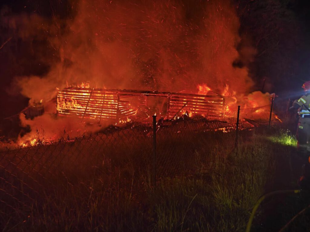 W wyniku pożaru całkowitemu spaleniu uległ budynek gospodarczy -stodoła.