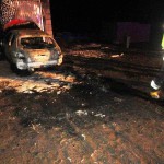 Dzisiaj (8 lutego) około godziny 1.10, na jednej z prywatnych posesji w Nowej Wsi, zauważony został pożar.Po przybyciu na miejsce zdarzenia ustalono, że palił się samochód osobowy, który przylegał do drzwi garażowych budynku.