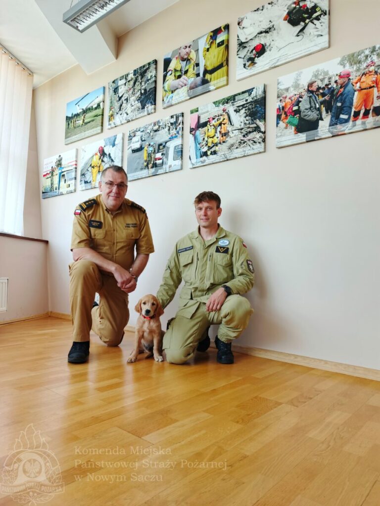 Nowy nabytek – dwumiesięczny pies rasy Golden Retriever (samiec) – został wyłoniony na podstawie profesjonalnych testów behawioralnych (PAT – Volharda i Campbella), które oceniają predyspozycje psa do pracy w ekstremalnych warunkach. Pies wykazał wysoki poziom motywacji do współpracy z człowiekiem, stabilny temperament i duży potencjał rozwojowy.