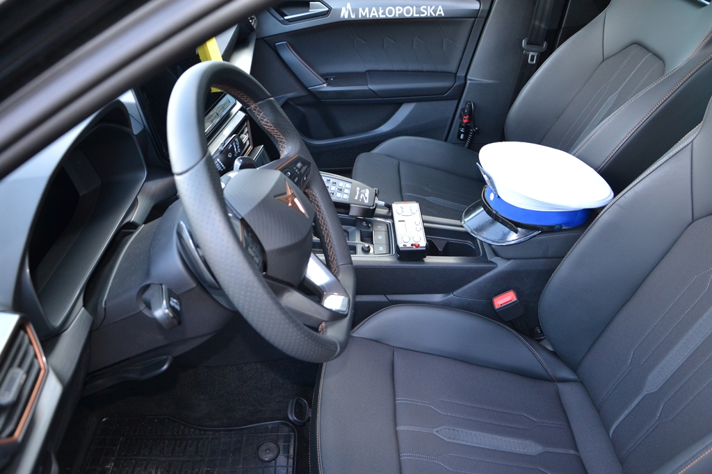 Nowy radiowóz to Cupra Leon z dwulitrowym benzynowym silnikiem o mocy 310 KM, wyposażona m.in. wideorejestrator z dwiema kamerami. Samochód z tym wyposażeniem kosztował ponad 270 tys. złotych i jego zakup był możliwy w ramach porozumienia Komendy Wojewódzkiej Policji w Krakowie z Urzędem Marszałkowskim Województwa Małopolskiego, który współfinansował zakup dwóch takich radiowozów dla małopolskich policjantów.