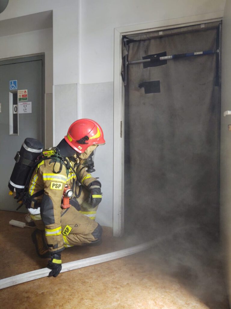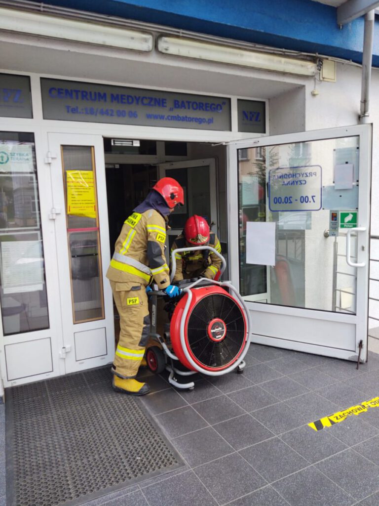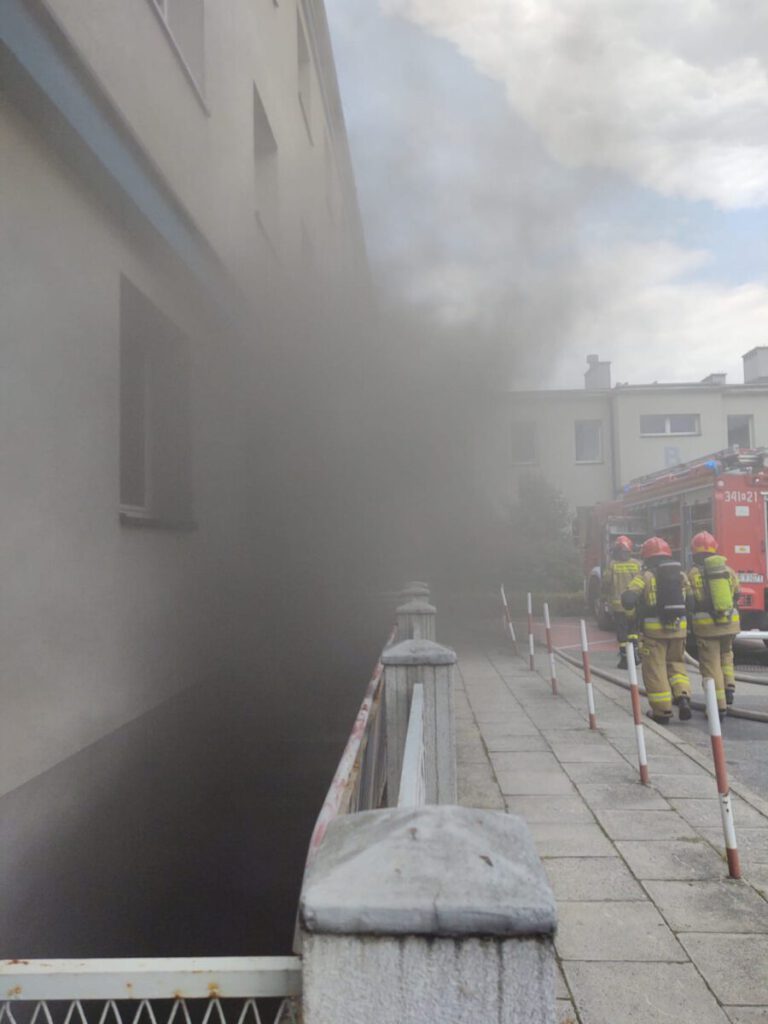 –W przychodni, w pomieszczeniach piwnicy, panowało intensywne zadymienie. Drzwi stanowiące wejście do piwnicy były zamknięte co w znacznym stopniu ograniczyło wydostawanie się dymu na pozostałą część budynku. Według informacji pracowników około pół godziny przed powstaniem pożaru w budynku nastąpił zanik napięcia. Przed przybyciem zastępów straży z budynku ewakuowało się około 50-ciu pracowników i 15 osób postronnych –relacjonują strażacy – Na dachu obiektu zainstalowane są panele fotowoltaiczne, a instalacja do niej znajdowała się w jednym z kilku pomieszczeń zlokalizowanych w piwnicy. Układ pomieszczeń piwnicy był skomplikowany. Tylko w niektórych pomieszczeniach piwnicznych znajdowały się okna, które w niewielkim stopniu dało się uchylić. Część pomieszczeń nie posiadała okien. Strażacy weszli do pomieszczeń z których wydobywał się dym. Odnaleziono źródło zadymienia, które znajdowało się w pomieszczeniu gdzie zamontowana była instalacja fotowoltaiczna. Ugaszono tlące się elementy instalacji oraz znajdujące się w pomieszczeniu urządzenia. W trakcie działań nie odnotowano osób poszkodowanych. Działania 6 zastępów i 18 strażaków trwały trzy godziny.
