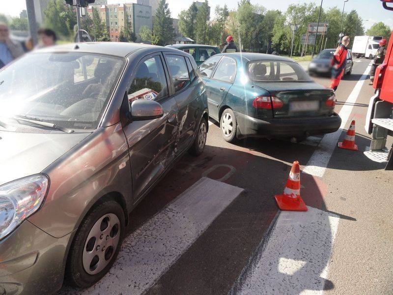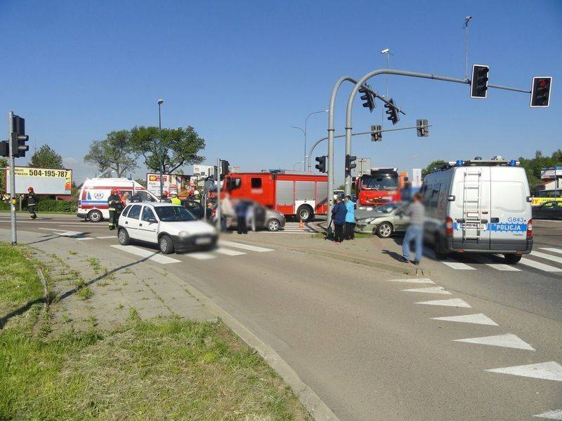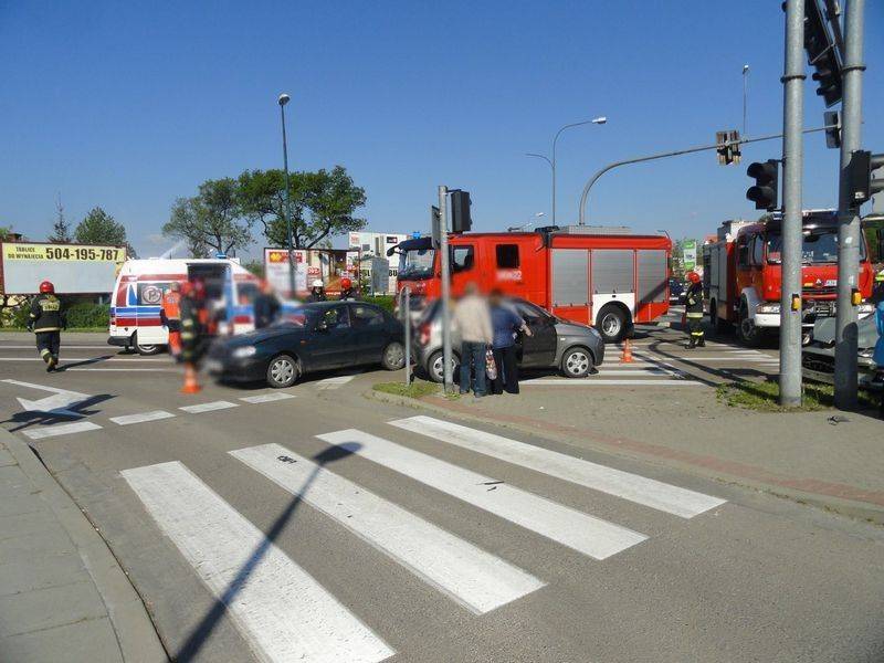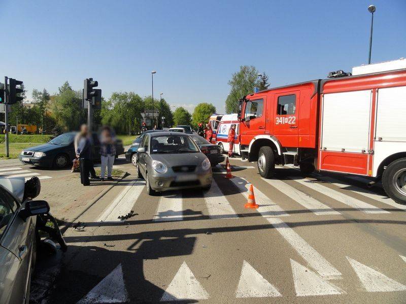 Po przybyciu na miejsce zdarzenia stwierdzono, że na skrzyżowaniu z działająca sygnalizacją świetlną zderzyły się trzy samochody osobowe. Skrzyżowanie było częściowo zablokowane poprzez rozmieszczenie samochodów, które uległy wypadkowi. Z jednego samochodu nastąpił wyciek płynów eksploatacyjnych.