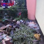 Kolejne działania strażaków polegały na sprawdzeniu innych boksów w piwnicy oraz  wynoszeniu spalonych i nadpalonych elementów a także  materiałów składowanych w piwnicach  na zewnątrz. Wyniesione materiały zostały przelane wodą -kontynuuje Marian MarszałekMiejsce powstania pożaru dokładnie przelano wodą. Zasilanie wodne stanowił hydrant usytuowany na ulicy Broniewskiego. Strażacy pracowali w sprzęcie ochrony dróg oddechowych.