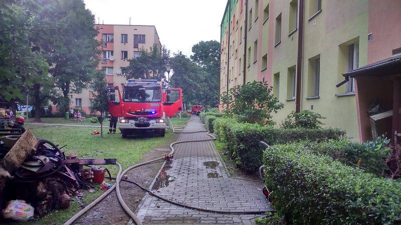 Nowy Sącz, Broniewskiego. Pożar piwnicy w bloku