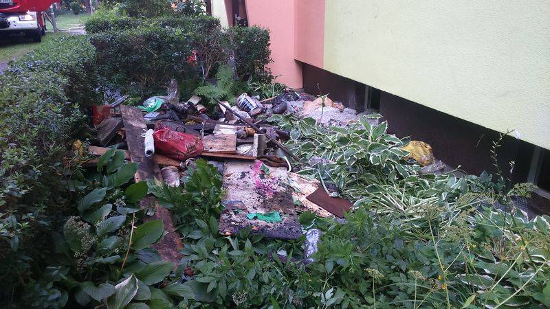Kolejne działania strażaków polegały na sprawdzeniu innych boksów w piwnicy oraz  wynoszeniu spalonych i nadpalonych elementów a także  materiałów składowanych w piwnicach  na zewnątrz. Wyniesione materiały zostały przelane wodą -kontynuuje Marian MarszałekMiejsce powstania pożaru dokładnie przelano wodą. Zasilanie wodne stanowił hydrant usytuowany na ulicy Broniewskiego. Strażacy pracowali w sprzęcie ochrony dróg oddechowych.