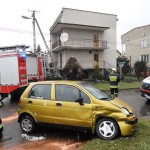 Poszkodowany kierowca został zabrany do szpitala na badania. Na prośbę Policji przepchnięto uszkodzone pojazdy ze skrzyżowania na ulicę Wiejską. Następnie usunięto pozostałości po kolizji z jezdni na pobocze. Działania strażaków trwały prawie godzinę.