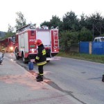 Działania strażaków polegały na zabezpieczeniu i oznakowaniu miejsca zdarzenia oraz dokonano sorpcji rozlanych płynów eksploatacyjnych. Po dotarciu na miejsce zdarzenia karetki Pogotowia Ratunkowego, kierujący motocyklem zdecydował się na przetransportowanie do szpitala na szczegółowe badania. Działania strażaków trwały około pół godziny.