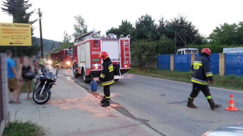 Kierujący motocyklem uskarżał się na niewielkie dolegliwości a kierujący samochodem nie doznał żadnych obrażeń.