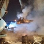 Ogień pochłaniał stertę wraków samochodowych oraz znajdującą się nieopodal prasę hydrauliczną koparki -mówi Marian Marszałek z PSP Nowy Sącz –Bezpośrednio zagrożone było pomieszczenie magazynowe, gdzie składowane było 20 butli tlenowych oraz 1 butla propan-butan.  Zagrożona była również wiata w której magazynowane były opony samochodowe. W bliskiej odległości od źródła pożaru znajdował się samochód kontenerowy  na który oddziaływało  promieniowanie cieplne.
