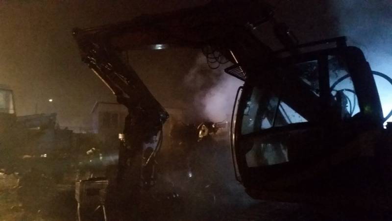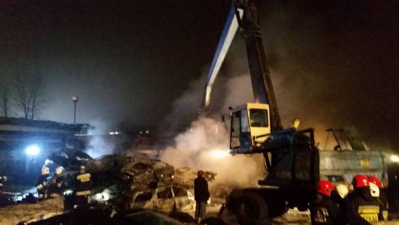 Obecny na miejscu właściciel firmy udostępnił koparkę z operatorem przy pomocy której przemieszczano wraki pojazdów w celu  ich dogaszenia. Przy pomocy kamery termowizyjnej sprawdzono butle z tlenem i propanem-butanem nie stwierdzając zagrożenia.