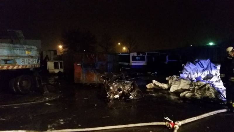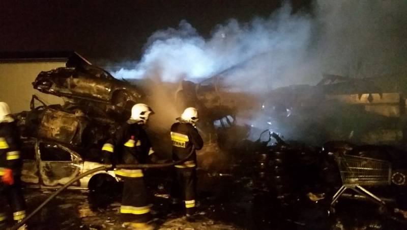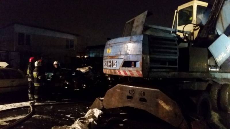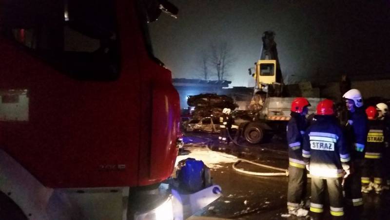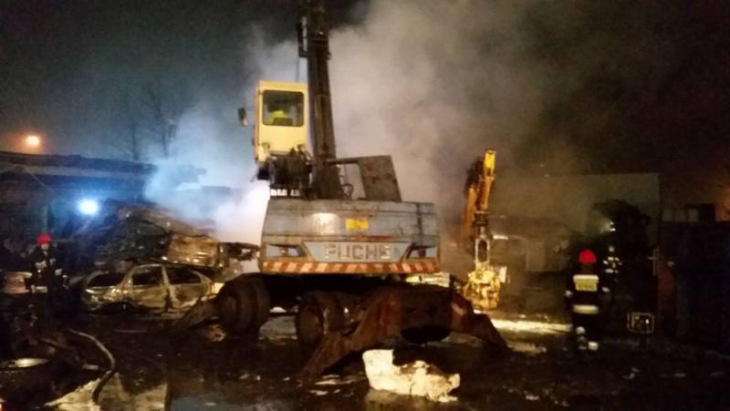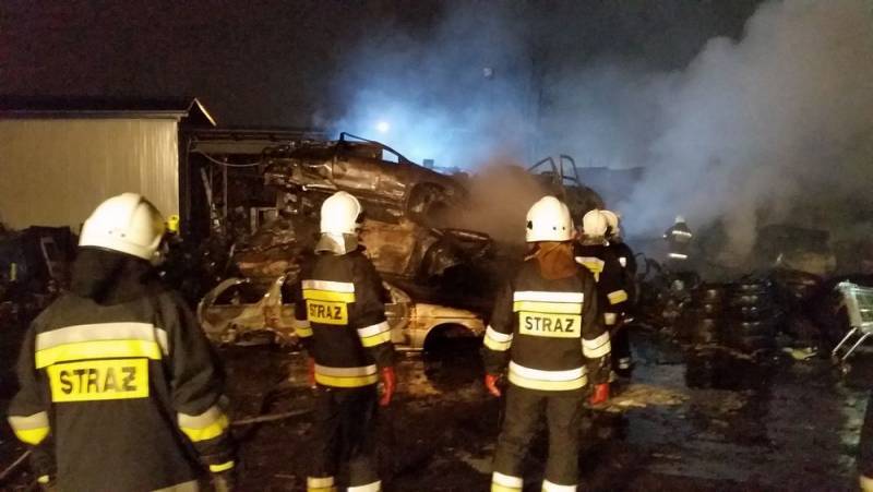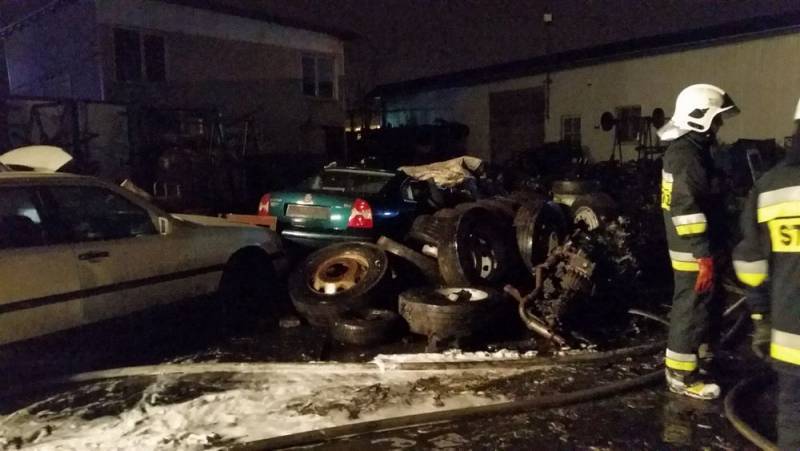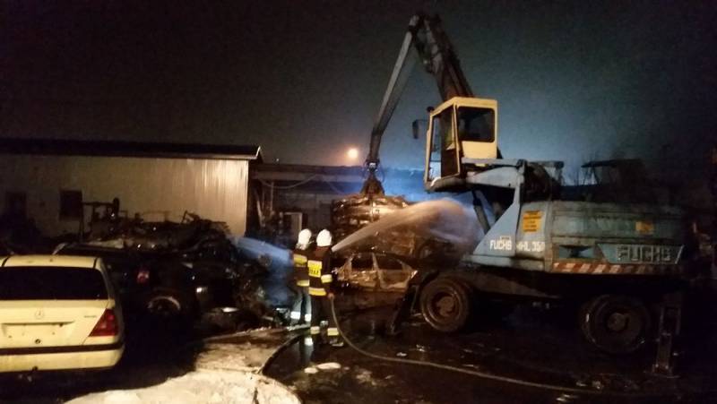 Ogień pochłaniał stertę wraków samochodowych oraz znajdującą się nieopodal prasę hydrauliczną koparki -mówi Marian Marszałek z PSP Nowy Sącz –Bezpośrednio zagrożone było pomieszczenie magazynowe, gdzie składowane było 20 butli tlenowych oraz 1 butla propan-butan.  Zagrożona była również wiata w której magazynowane były opony samochodowe. W bliskiej odległości od źródła pożaru znajdował się samochód kontenerowy  na który oddziaływało  promieniowanie cieplne.