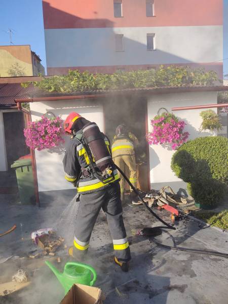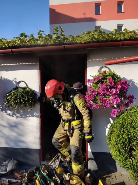–Na terenie prywatnej posesji doszło do pożaru komórki gospodarczej, przylegającej do innego pomieszczenia gospodarczego -relacjonują strażacy – W płonącym pomieszczeniu składowane były narzędzia gospodarcze i sprzęt sportowy. Działania straży pożarnej polegały na zabezpieczeniu miejsca zdarzenia oraz podaniu jednego, prądu wody przez uchylone drzwi. Następnie strażacy weszli do środka w celu dogaszenia pożaru. Wyniesiono na zewnątrz spalone i nadpalone przedmioty, które zostały dogaszone. Oddymiono budynek wentylatorem oddymiającym. Sprawdzono pomieszczenie w którym doszło do pożaru oraz pomieszczenia sąsiadujące za pomocą kamery termowizyjnej oraz miernika wielogazowego. Działania strażaków trwały ponad pół godziny. Przyczyna pożaru jest nieustalona.