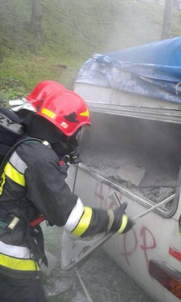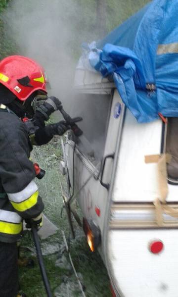 W sobotę 14 maja przed godziną 10:00 dwa zastępy z JRG nr 1 w Nowym Sączu gasiły pożar przyczepy kempingowej przy ulicy Bulwar Narwiku.