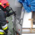 –Po przybyciu na miejsce zdarzenia ustalono, że na parkingu strzeżonym powstał pożar przyczepy kempingowej. Przyczepa usytuowana była na skraju parkingu i nie stanowiła zagrożenia dla innych obiektów i pojazdów -mówi Marian Marszałek z PSP Nowy Sącz – Pożar został częściowo przytłumiony przez podanie proszku gaśniczego do wnętrza przyczepy przez obsługę parkingu. Działania strażaków polegały na zabezpieczeniu terenu działań oraz dostanie się ratowników w sprzęcie ochrony dróg oddechowych do wnętrza przyczepy przez wypalone plastikowe okno. Następnie otwarto drzwi przyczepy by ją przewietrzyć. Strażacy wynieśli na zewnątrz tlące się elementy wystroju i sprawdzili ją kamerą termowizyjną.