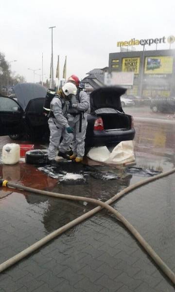 –Właścicielka pojazdu marki Volkswagen Passat, która przewoziła blisko 30l kwasu azotowego 55% opuściła pojazd zanim służby ratownicze pojawiły się na miejscu zdarzenia. W wyniku pęknięcia pojemnika przy uchwycie i rozszczelnieniu, nastąpił wyciek żrących substancji. Teren został całkowicie zabezpieczony. Wyznaczono strefę bezpieczeństwa a patrol policji ewakuował osoby postronne.Strażacy przygotowali wannę i roztwór wapna do neutralizacji kwasu.Rozstawiono kurtyny wodne w celu niedopuszczenia do przemieszczenia się fazy gazowej kwasu po otwarciu samochodu oraz zabezpieczono studzienkę kanalizacyjną a także odłączono klemy akumulatora w pojeździe -relacjonuje naszemu portalowi Marian Marszałek z PSP Nowy Sącz –Duża część kwasu wylała się w samochodzie. Widoczne były już opary jasno – brązowe substancji. Samochód w którym doszło do wycieku kwasu został zabrany przez lawetę. Działania strażaków trwały prawie dwie i pół godziny.