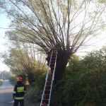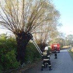 Po przybyciu na miejsce zdarzenia ustalono, że paliło się pojedyncze drzewo (wierzba). Strażacy za pomocą jednego prądu wody stłumili pożar.  Następnie za pomocą pilarki mechanicznej ścięto gałęzie uzyskując dostęp do ogniska pożaru.  Zarzewia ognia dokładnie przelano wodą eliminując ryzyko ponownego zapalenia się drzewa.