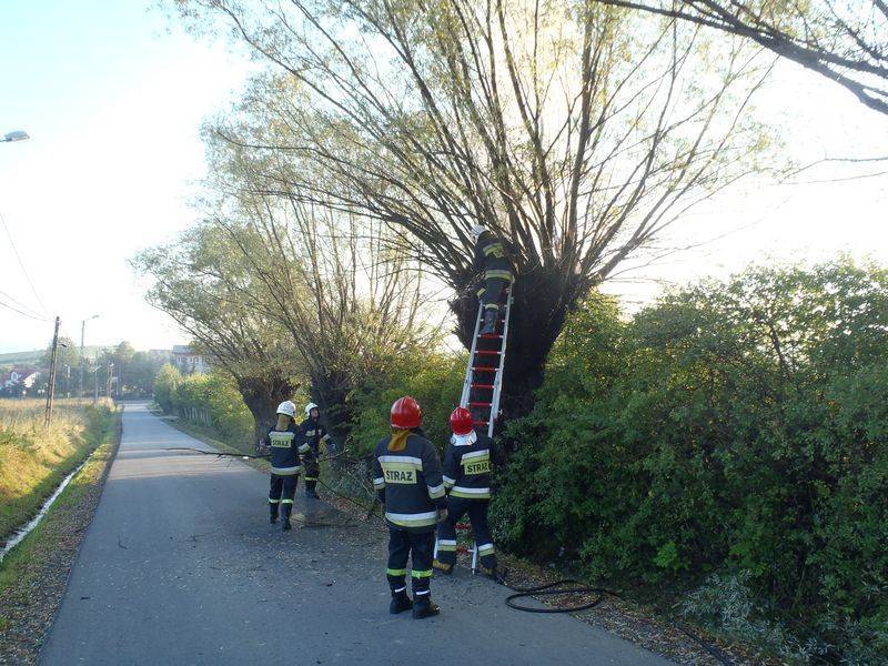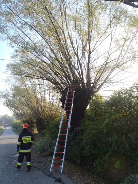 Po przybyciu na miejsce zdarzenia ustalono, że paliło się pojedyncze drzewo (wierzba). Strażacy za pomocą jednego prądu wody stłumili pożar.  Następnie za pomocą pilarki mechanicznej ścięto gałęzie uzyskując dostęp do ogniska pożaru.  Zarzewia ognia dokładnie przelano wodą eliminując ryzyko ponownego zapalenia się drzewa.