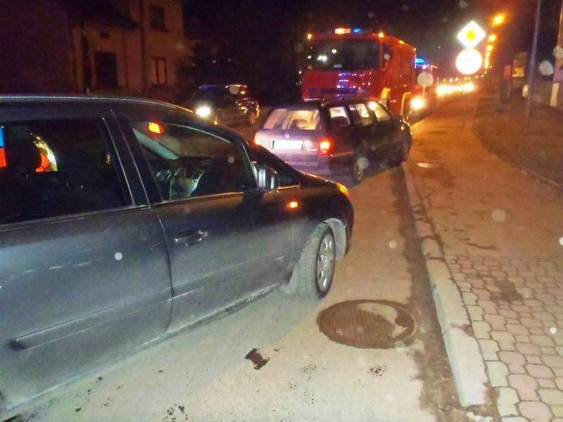 Do drugiego zdarzenia doszło około godziny 17.30. Po przyjeździe na miejsce zdarzenia ustalono, że najechały na siebie kolejno cztery samochody. W tym zdarzeniu brało udział pięć osób dorosłych oraz dwoje dzieci. Działania strażaków polegały na zasypaniu plamy substancji ropopochodnej sorbentem. Odłączono akumulator w jednym z pojazdów oraz zakręcono zawór instalacji LPG. W miejscu prowadzonych działań kierowano ruchem drogowym. Na miejscu zdarzenia była karetka Pogotowia Ratunkowego. Nikt z uczestników nie został zabrany do szpitala.
