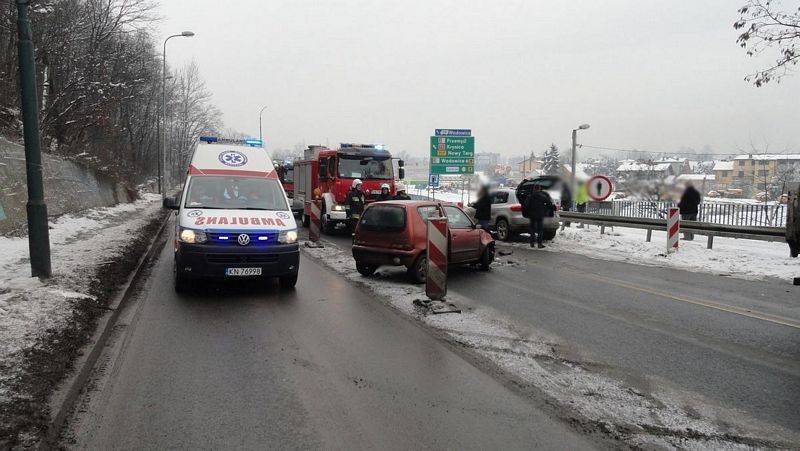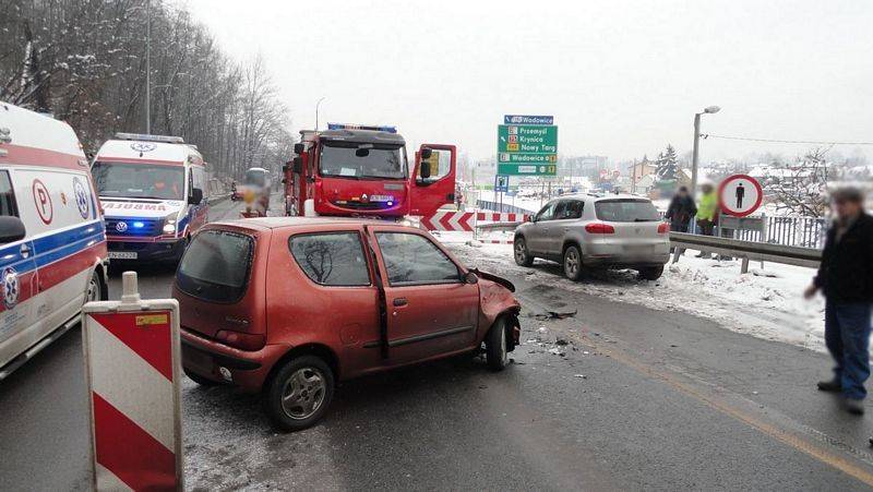 Wczoraj 4 lutego kilka minut po godzinie dziewiątej w Nowym Sączu na ulicy Witosa zderzyły się dwa samochody. Do zdarzenia zadysponowano dwa zastępy z JRG nr 1 w Nowym Sączu. Po przybyciu na miejsce zdarzenia ustalono, że samochód osobowy uderzył w bok samochodu ciężarowego. Uszkodzone pojazdy zablokowały jeden pas drogi krajowej. Działania polegały na zabezpieczeniu miejsca zdarzenia. W samochodzie osobowym odłączono akumulator. Przybyła na miejsce karetka Pogotowia ratunkowego udzieliła pomocy medycznej trzem osobom poszkodowanym w tym dziecku. Zostały one przewiezione do szpitala. Strażacy kierowali ruchem drogowym. Następnie zepchnięto uszkodzony samochód osobowy na pobocze i usunięto z jezdni pozostałości po zdarzeniu.