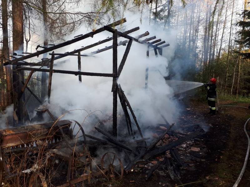 Po przybyciu na miejsce zdarzenia ustalono, że pożarem objęty był cały drewniany budynek stodoły,  który wypełniony był słomą. Obok budynku znajdowały  się drzewa, które uległy niewielkiemu opaleniu -relacjonują strażacy – Przybyły na miejsce właściciel budynku gospodarczego zaczął uskarżać się na duszność. Na miejsce przybyła karetka Pogotowia ratunkowego. Po przebadaniu przez załogę karetki pogotowia mężczyzna pozostał na miejscu pożaru. Po lokalizacji zagrożenia przystąpiono do rozbiórki drewnianej konstrukcji budynku za pomocą piły spalinowej. Drewniane belki przeniesiono w bezpieczne miejsce i przelano je wodą/ Działania ratowniczo- gaśnicze trwały prawie dwie godziny. Przyczyna pożaru jest nieustalona.