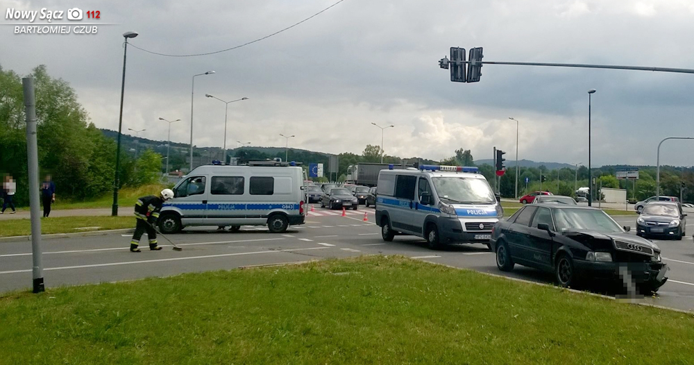 Nowy Sącz -zderzenie samochodów na Rondzie Solidarności