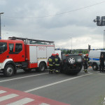 Po przybyciu na miejsce zdarzenia, ustalono, że doszło do czołowo-bocznego zderzenia samochodów osobowych, wskutek czego Land Rover dachował. Kierowca Land Rovera (mężczyzna w wieku około 50 lat) z ranami ciętymi głowy znajdował się pod opieką zespołu karetki Pogotowia Ratunkowego.
