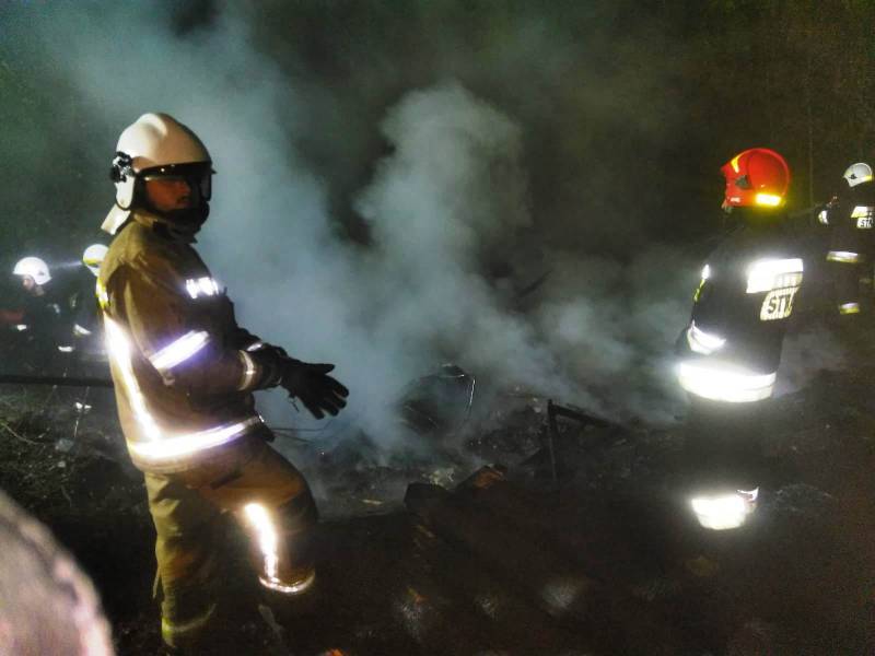 –Po przybyciu na miejsce zdarzenia ustalono, że pożarem objęty był cały budynek gospodarczy- stodoła o konstrukcji drewnianej wykonanej z bali. Budynek nie był wyposażony w energię elektryczną. Wewnątrz budynku znajdowały się opony do samochodu oraz siano -relacjonują strażacy – W odległości około 5 m od pożaru znajdował się budynek drewniany, który był zagrożony. Po zlokalizowaniu pożaru przystąpiono do prac rozbiórkowych spalonej drewnianej konstrukcji budynku gospodarczego. Elementy nadpalone budynku zostały dokładnie przelane wodą. Działania 12 zastępów straży oraz 50 strażaków trwały ponad sześć godzin. Prawdopodobną przyczyną pożaru było uderzenie pioruna w budynek.