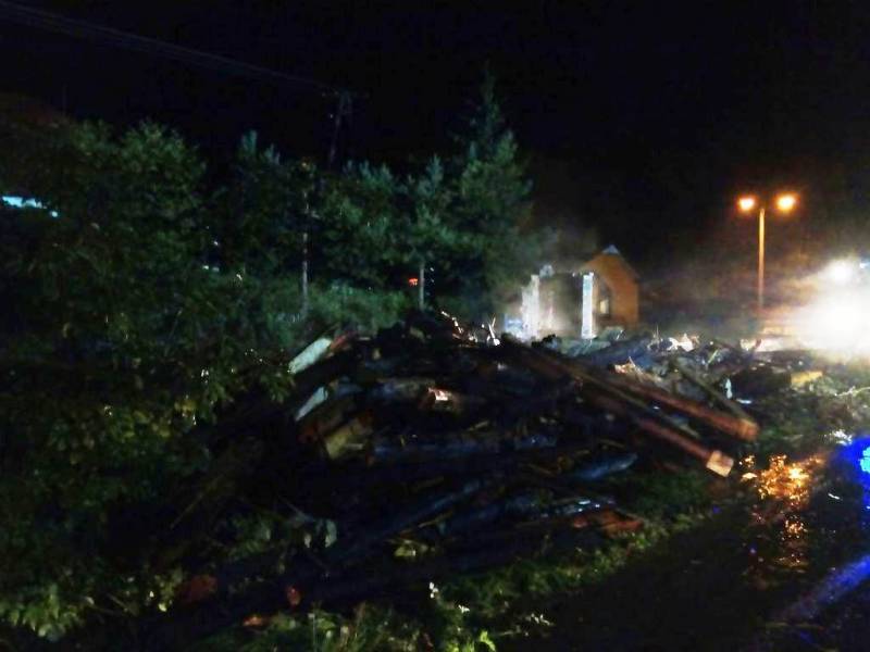 Po ugaszeniu pożaru przystąpiono do jego rozbiórki. Pogorzelisko oraz drewniane elementy budynku przelano wodą. Działania gaśnicze trwały trzy godziny. Przyczyna pożaru jest nieustalona.