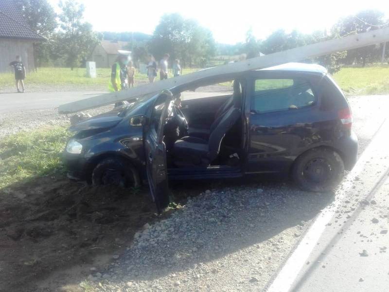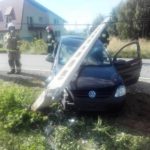 –Samochód osobowy VW Polo, którym jechały dwie dorosłe osoby zjechał z drogi i uderzył w żelbetonowy słup telekomunikacyjny -relacjonują strażacy –W wyniku zderzenia słup został złamany.Wszyscy uczestnicy zdarzenia opuścili pojazd o własnych siłach i nie uskarżali się na żadne dolegliwości. Droga była całkowicie zablokowana. Działania strażaków polegały na zabezpieczeniu miejsca zdarzenia oraz powiadomieniu firmy telekomunikacyjnej o uszkodzeniach słupa. Zerwane linie telefoniczne podwieszono na sąsiednich słupach i oznaczono taśmą ostrzegawczą. Przybyła na miejsce karetka Pogotowia Ratunkowego przebadała osoby biorące w zdarzeniu. Osoby te pozostały na miejscu zdarzenia. Działania strażaków trwały godzinę.