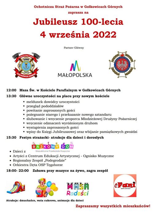 Już w najbliższą niedzielę (4 września) w Gołkowicach Górnych OSP organizuje Jubileusz 100-lecia działalności.