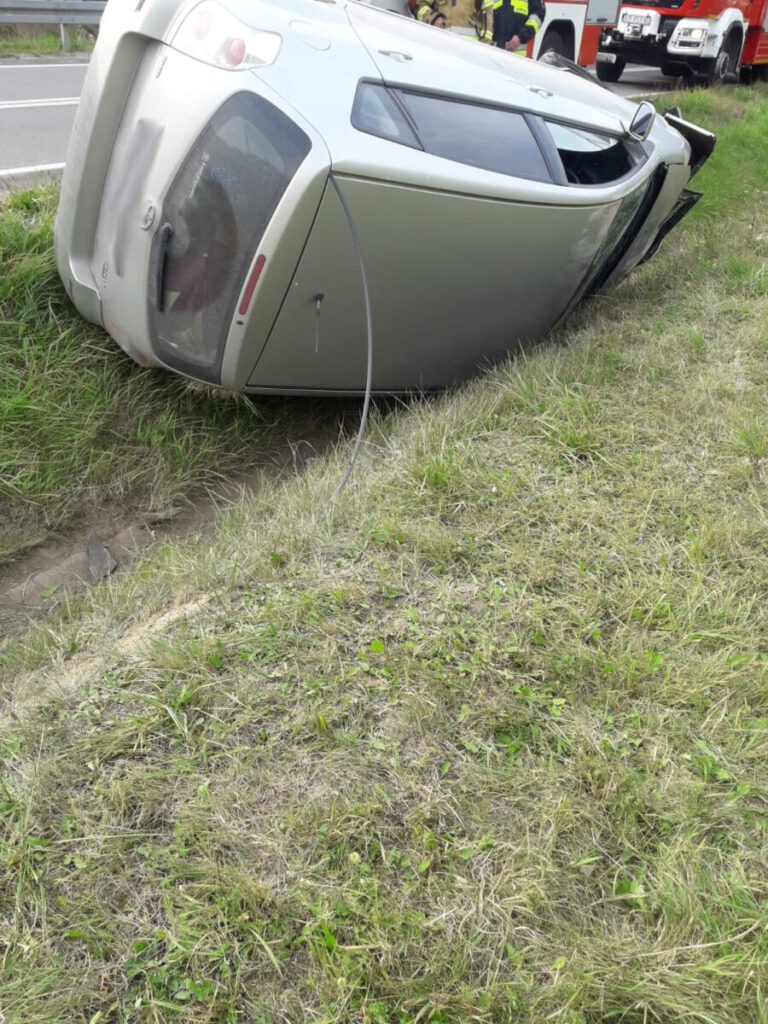 –Po przybyciu na miejsce zdarzenia ustalono, że doszło do dachowania samochodu osobowego marki Toyota. Pojazdem podróżowały dwie osoby tj. kobieta oraz dziecko. Na miejscu zdarzenia obecny był patrol Policji oraz karetka Pogotowia ratunkowego –relacjonują strażacy – W chwili przybycia strażaków osoby podróżujące pojazdem znajdowały się pod opieką ratowników medycznych Pogotowia ratunkowego. Działania strażaków polegały na zabezpieczeniu miejsca zdarzenia, odłączeniu klem akumulatora w pojeździe oraz kierowaniu ruchem drogowym wahadłowo. Osoby podróżujące samochodem po przebadaniu pozostały na miejscu zdarzenia.