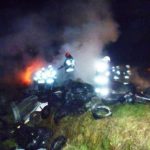 –Pożarem objęte było w całości składowisko opon –relacjonuje Marian Marszałek z PSP Nowy Sącz – Działania strażaków polegały na zabezpieczeniu miejsca zdarzenia oraz podaniu prądu piany ciężkiej w natarciu na palące się składowisko opon w obronie na zagrożony budynek. Ze względu na duże zadymienie pracowano w aparatach ochrony dróg oddechowych. Po ugaszeniu pożaru przystąpiono do przerzucenia i przelania spalonych opon.Działania gaśnicze trwały ponad godzinę. Przyczyna pożaru jest nieustalona.