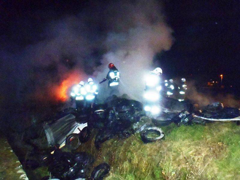 –Pożarem objęte było w całości składowisko opon –relacjonuje Marian Marszałek z PSP Nowy Sącz – Działania strażaków polegały na zabezpieczeniu miejsca zdarzenia oraz podaniu prądu piany ciężkiej w natarciu na palące się składowisko opon w obronie na zagrożony budynek. Ze względu na duże zadymienie pracowano w aparatach ochrony dróg oddechowych. Po ugaszeniu pożaru przystąpiono do przerzucenia i przelania spalonych opon.Działania gaśnicze trwały ponad godzinę. Przyczyna pożaru jest nieustalona.
