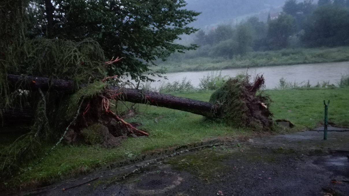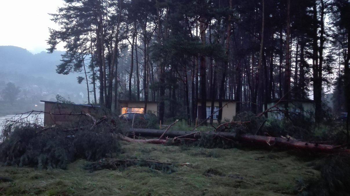 To była bardzo niespokojna środa w Piwnicznej-Zdrój, gdzie po południu uaktywniły się gwałtowne burze. Najgorsza sytuacja ma miejsce w pobliskich ośrodkach wypoczynkowych (Armatury i kolejowego) na prawym brzegu Popradu gdyż tam nawałnica połamała drzewa i uszkodziła domki letniskowe. Spustoszenia są katastrofalne.