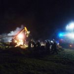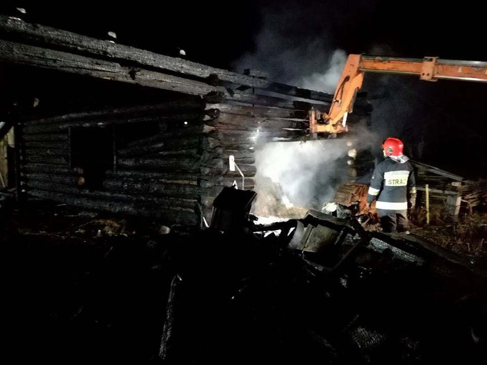 –Gdy zastępy dotarły na miejsce drewniany budynek gospodarczy o wymiarach 13×8 metrów w którym składowane były deski oraz siano, stał już w płomieniach –mówi naszemu portalowi bryg. mgr inż Marian Marszałek z PSP Nowy Sącz –bezpośrednio do płonącego budynku przylegał murowany budynek mieszkalny. W niedalekim sąsiedztwie znajdował się garaż z ciągnikiem i maszynami rolniczymi oraz stajnia sąsiada. Strażacy natychmiast przystąpili do gaszenia pożaru. Podjęto również obronę zagrożonej stodoły i stajni sąsiada. Zorganizowano zaopatrzenie wody do celów gaśniczych z hydrantu. Po zlokalizowaniu pożaru przystąpiono do prac wyburzeniowych spalonej konstrukcji stodoły. Elementy które stwarzały bezpośrednie zagrożenie zawaleniem rozbierano. Na miejsce działań przybył ciężki sprzęt, który wsparł działania strażaków. Spłonął drewniany budynek wraz z wyposażeniem: cyrkularką, drabiną, sianem i drewnem opałowym oraz drobnym sprzętem gospodarczym. Przyczyna pożaru jest nieustalona.