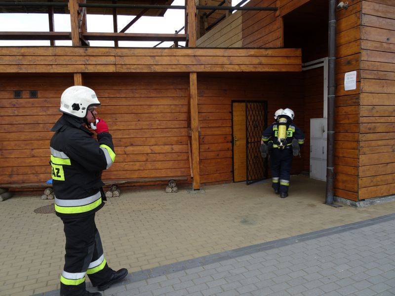 W chwili przybycia pierwszych sił i środków ochrony przeciwpożarowej pożar rozprzestrzeniał na dalszą cześć ołtarza. Strażacy odnaleźli dwie poszkodowane osoby, ewakuowali je z płonącego obiektu i udzieli im kwalifikowanej pierwszej pomocy. Równocześnie przystąpiono do gaszenia pożaru z wykorzystaniem podnośnika hydraulicznego. Broniono sąsiednich obiektów przy wykorzystaniu kurtyny wodnej.