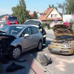 Po przybyciu na miejsce zdarzenia stwierdzono, że w zdarzeniu uczestniczyły dwa samochody osobowe, którymi podróżowali sami kierowcy. Kierujący pojazdami wydostali się o własnych siłach z uszkodzonych pojazdów. Na miejscu znajdowała  się karetka Pogotowia ratunkowego, której załoga udzielała pomocy medycznej dwóm poszkodowanym osobom. Jezdnia była całkowicie zablokowana.