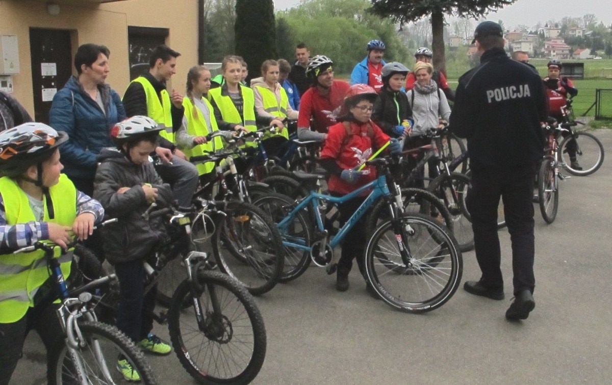 Rodzinny przejazd rowerowy był jedną z atrakcji corocznej Majówki na Bukowcu w Gminie Korzenna. Policjanci z Komisariatu Policji w Grybowie zadbali, by każdy uczestnik „Rajdu Nietoperza” dowiedział się o akcji „Kręci mnie bezpieczeństwo”.