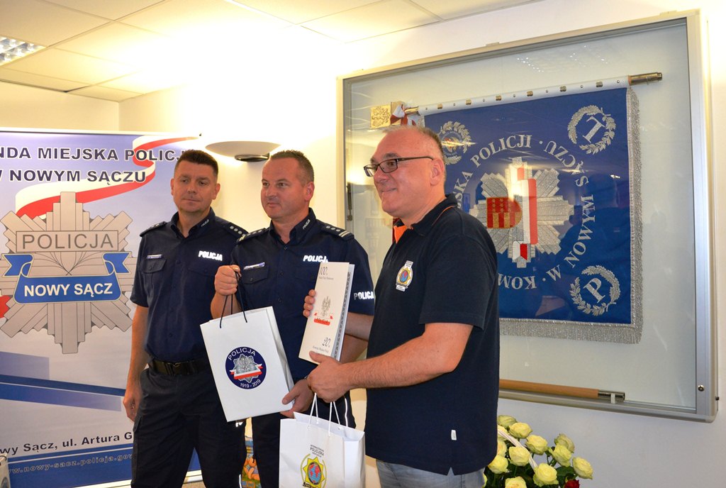 Na pamiątkę spotkania w sądeckiej jednostce goście otrzymali m.in. okolicznościowe albumy wydane z okazji 100. rocznicy powołania Policji Państwowej i 20-lecia istnienia Komedy Miejskiej Policji w Nowym Sączu oraz obejrzeli wystawę historyczną poświęconą tym jubileuszom.