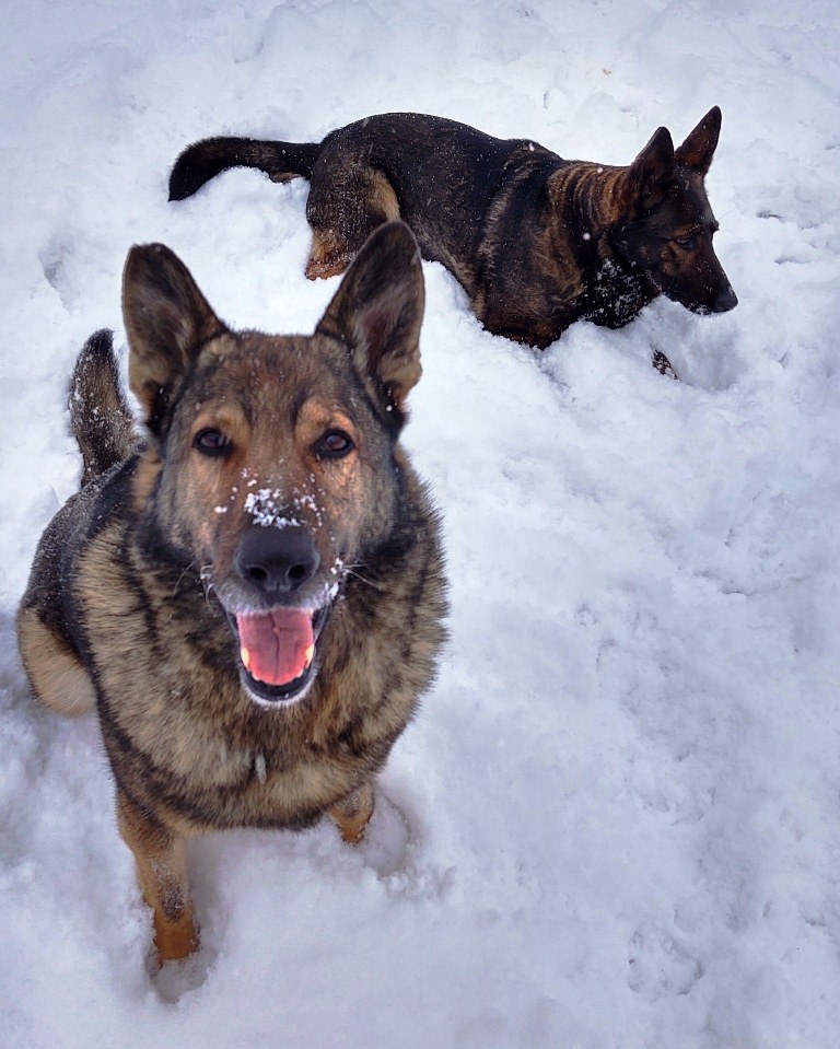 Na emeryturze Halny może liczyć na towarzystwo psich kompanów, ponieważ jego przewodnik ma pod opieką jeszcze dwa inne psy służbowe. Z kolei Gabono mieszka razem ze swoim następcą, młodym owczarkiem holenderskim, który właśnie zakończył szkolenie.