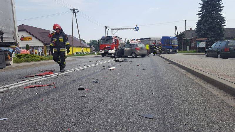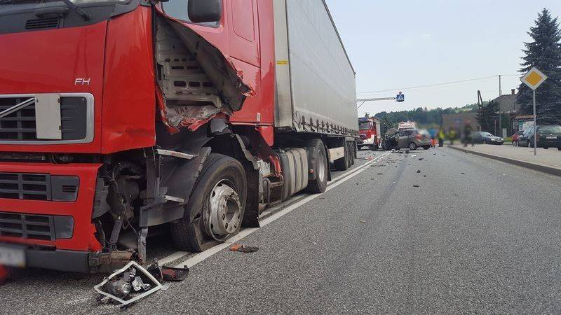Poważny wypadek w Łososinie. Czołówka osobówki z tirem