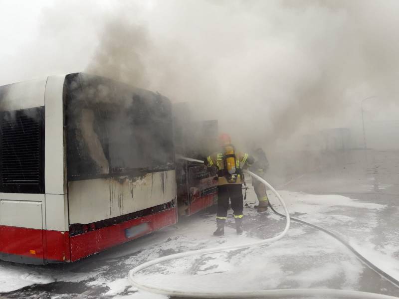 Po przybyciu na miejsce zdarzenia strażacy ustalili, że pożarem objęte były trzy autobusy -relacjonują strażacy –Przed przybyciem zastępów straży kierowcy zdążyli odjechać dwoma autobusami, które sąsiadowały z palącymi się pojazdami. Strażacy pracowali w sprzęcie ochrony dróg oddechowych. Na miejsce zdarzenia przybył Patrol Policji. Po lokalizacji pożaru przystąpiono do jego dogaszenia oraz kontroli wraków pojazdów przy użyciu kamery termowizyjnej. Na miejsce zdarzenia przybył prezes MPK, któremu przekazano miejsce zdarzenia. Działania strażaków trwały półtorej godziny. Przyczyna pożaru jest nieustalona.